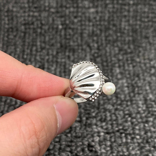 18K Gold Plated Inlaid Cubic Zirconia & Pearl Scallop Ring