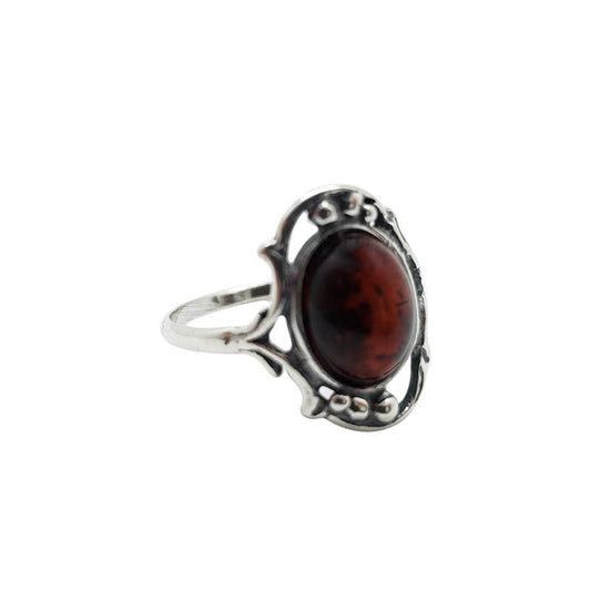Cherry Amber Sterling Silver Watch Adjustable Ring