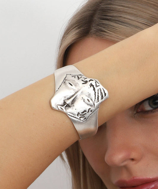 Artisan Silver Cuff Bracelet with Intricate Face Detail