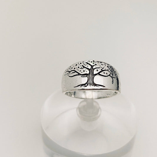 Tree Of Life Cherry Amber Sterling Silver Adjustable Ring