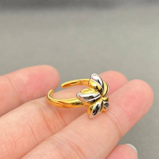 Two Tone Leaf 18K Gold Plated Stainless Steel Ring