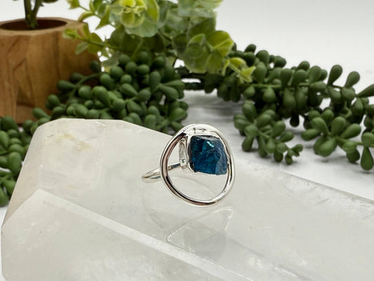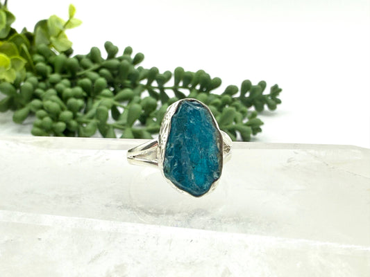 Blue Apatite Rough Gemstone 925/Sterling Silver Ring