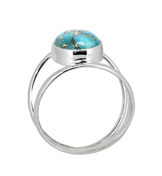 Blue Copper Turquoise 925 Sterling Silver Chunky Bypass Ring