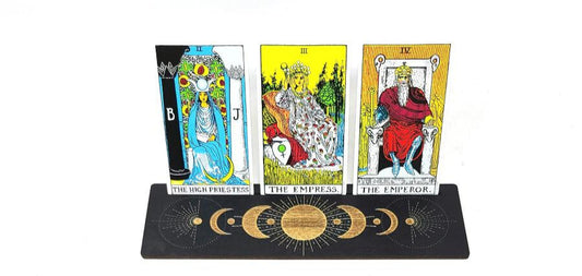 Wooden Tarot Card Holder with Moon Phase Design - 3 Card