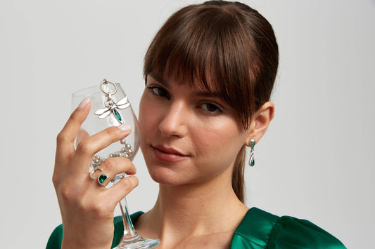Handmade Green Moon Swarovski Crystal 945 Silver Plate Ring