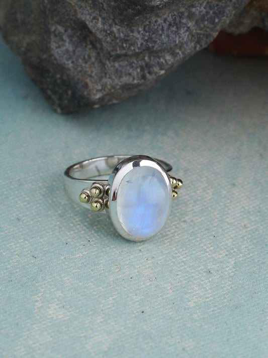 Rainbow Moonstone 925 Sterling Silver Solitaire Brass Accent