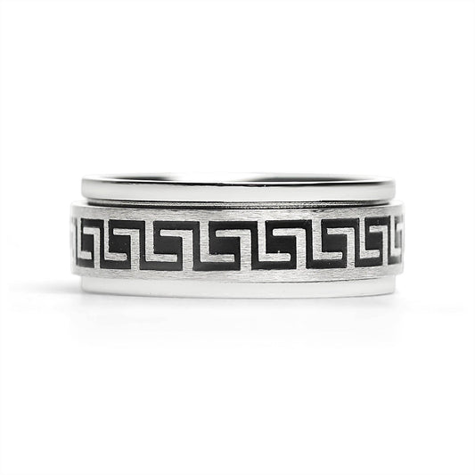 Black Greek Key Spinner ☆ Stainless Steel Ring