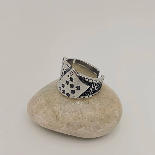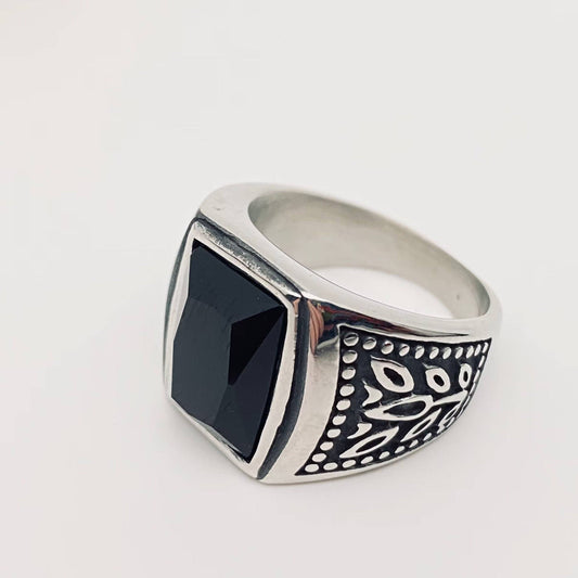 Tulip Pattern Black Zircon Stainless Steel Signet Ring