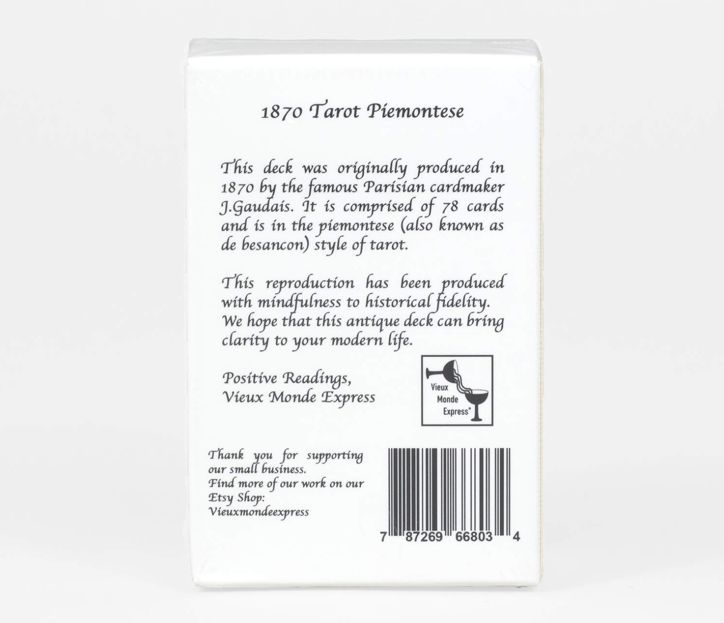 This reproduction has been produced with mindfulness to historical fidelity. We hope that this antique deck can bring clarity to your modern life. Bridge sized cards MADE IN USA