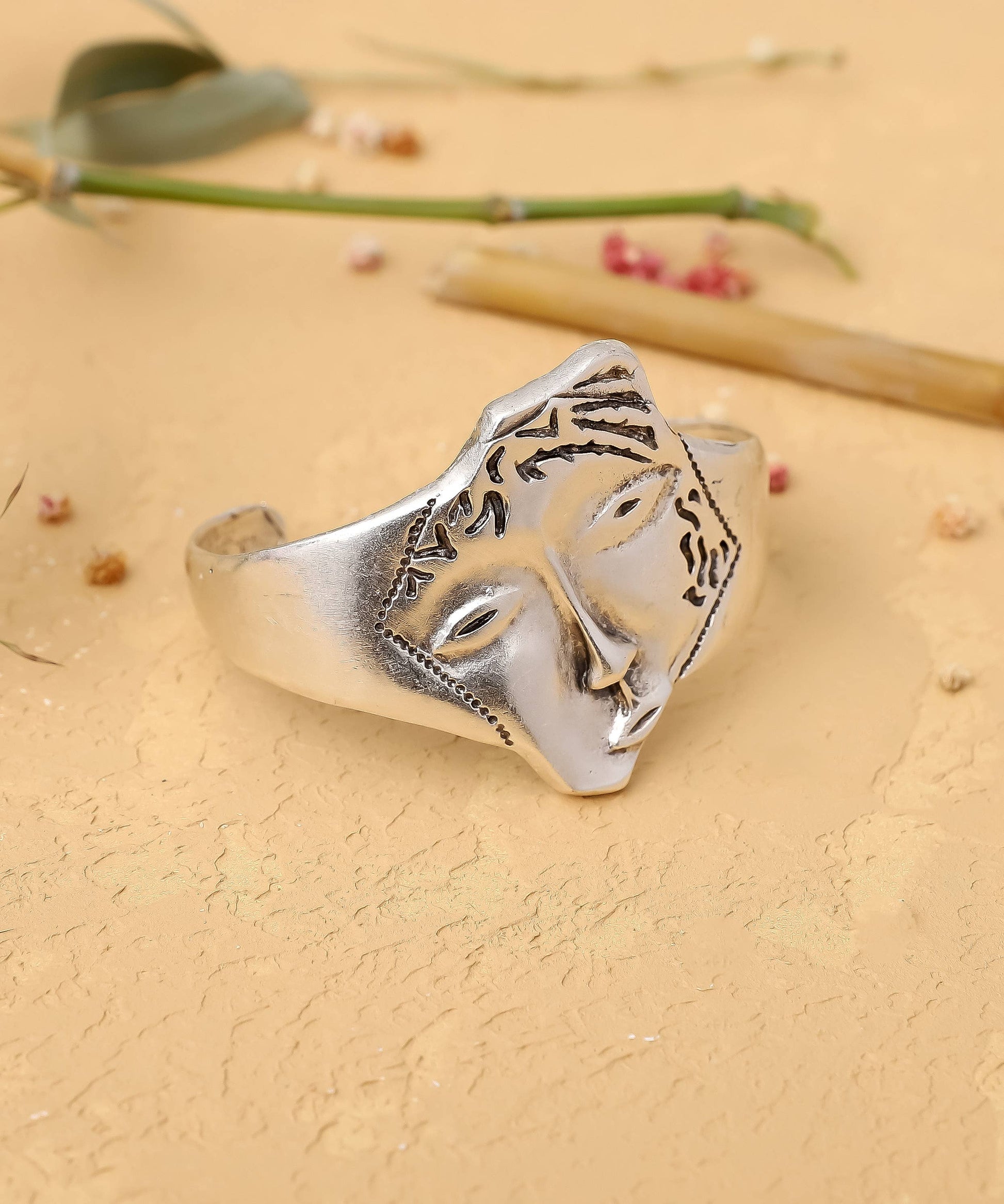 Artisan Silver Cuff Bracelet with Intricate Face Detail