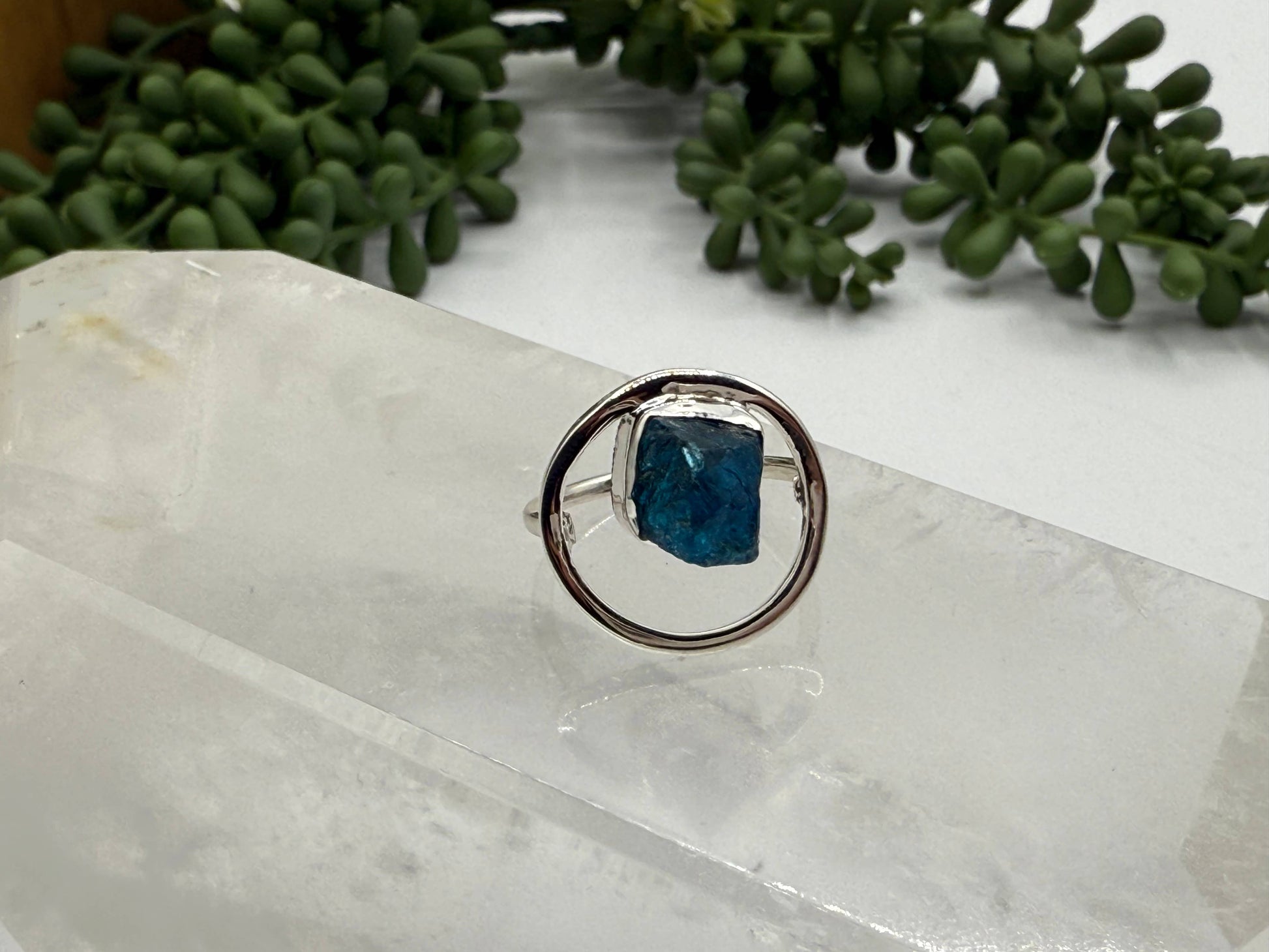 Blue Apatite Rough Gemstone 925/Sterling Silver Ring