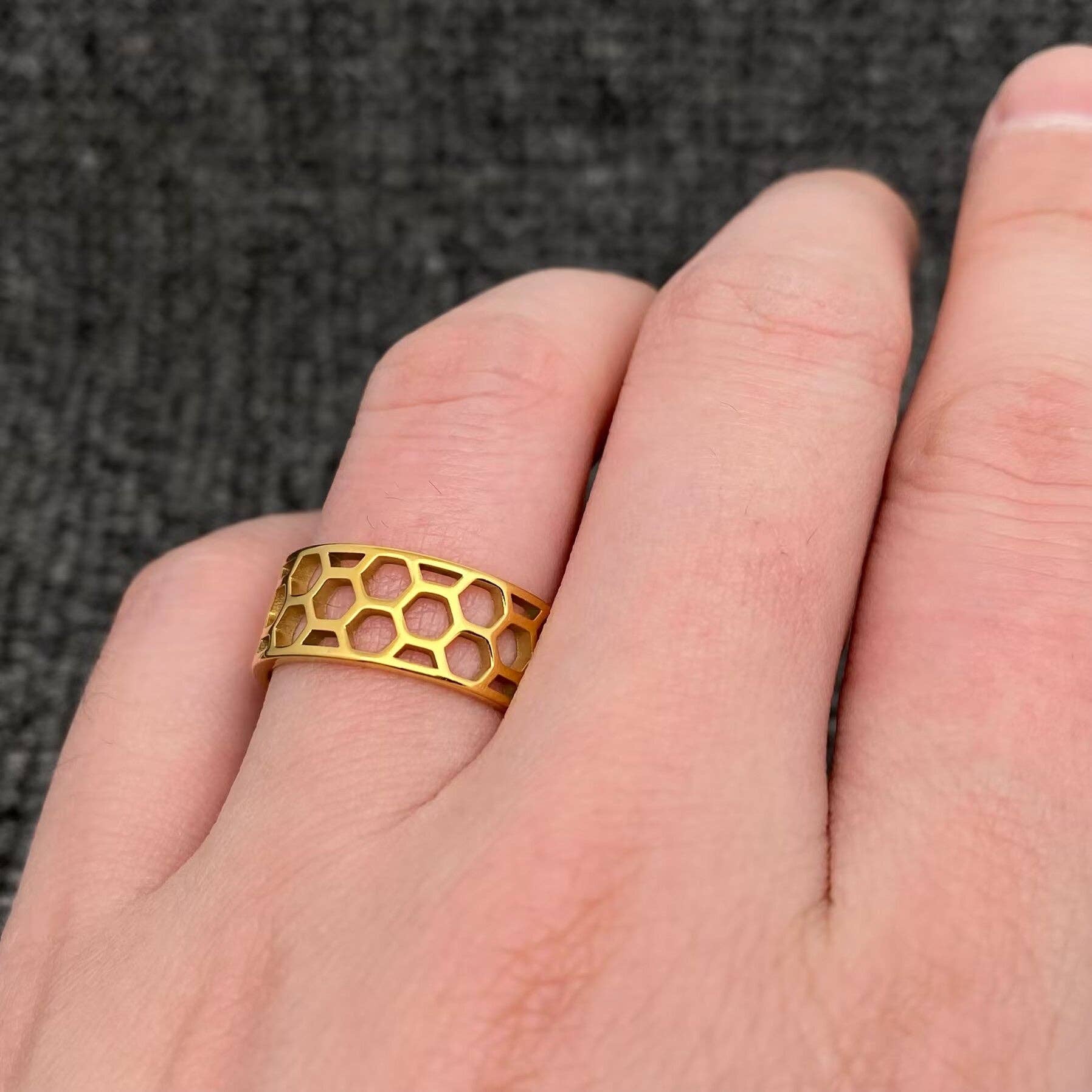 Hollow Honeycomb 18K Gold Plated Stainless Steel Ring