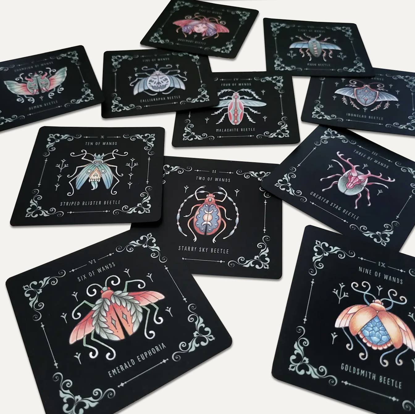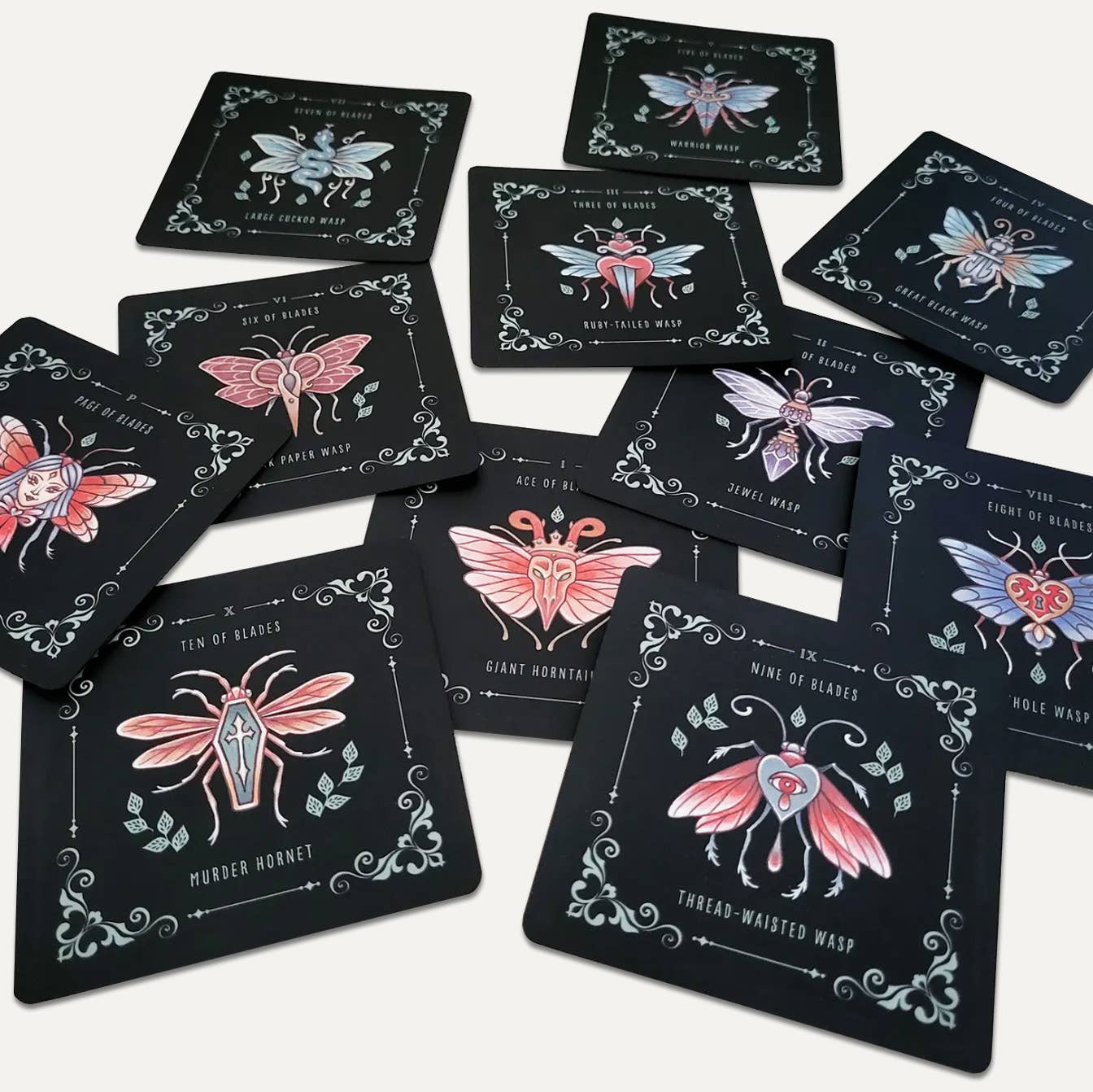 Immerse yourself in the magic shared by the world's tiniest creatures with Insecta Obscura. This 78-card tarot deck was meticulously painted by Faina Lorah and each illustration blends creepy, crawling things with surreal surprises. Connect with the vast universe of insects, arachnids, and beautiful beasties and unlock deep secrets with the ancient art of divination.