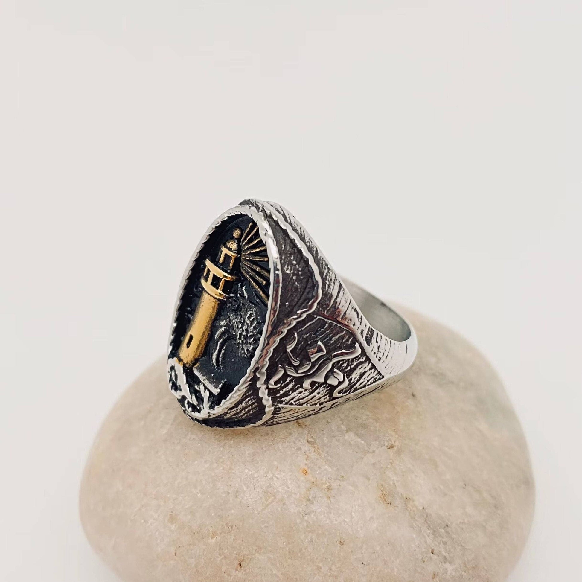 Men's Stainless Steel Ring Lighthouse Pattern