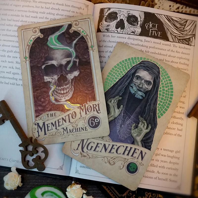 Discover the answer in Mother Mort's Carnival of Souls—the book is Jane's story, and the cards are yours!