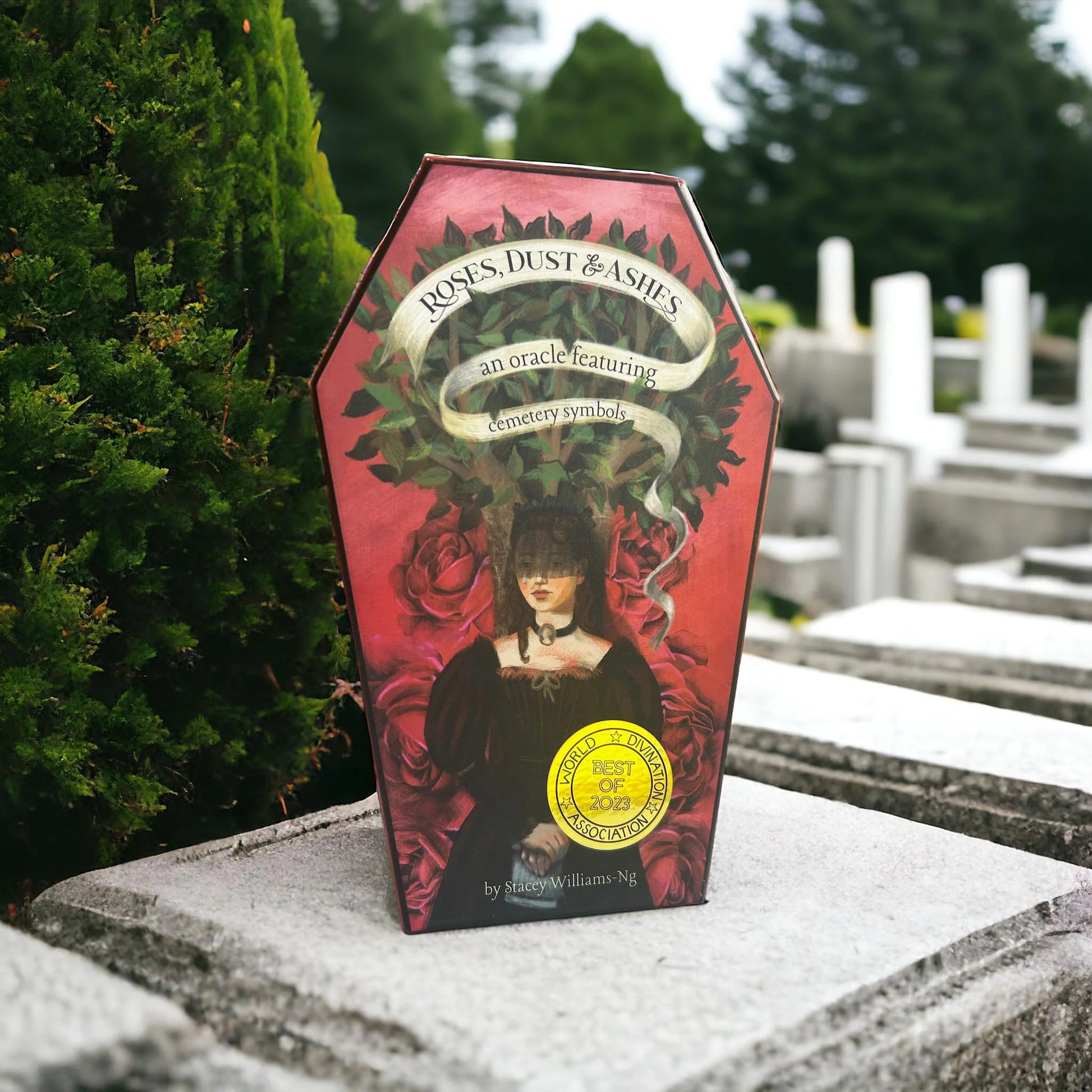 Have you ever walked through a historic cemetery and wondered about the art on the stone monuments? This oracle pays homage to all those weeping angels, anchors, scrolls and doves. With gold-etched cards in a velvet-lined coffin box, this deck is like nothing you've ever seen or touched. A must for cemetery lovers or card collectors.