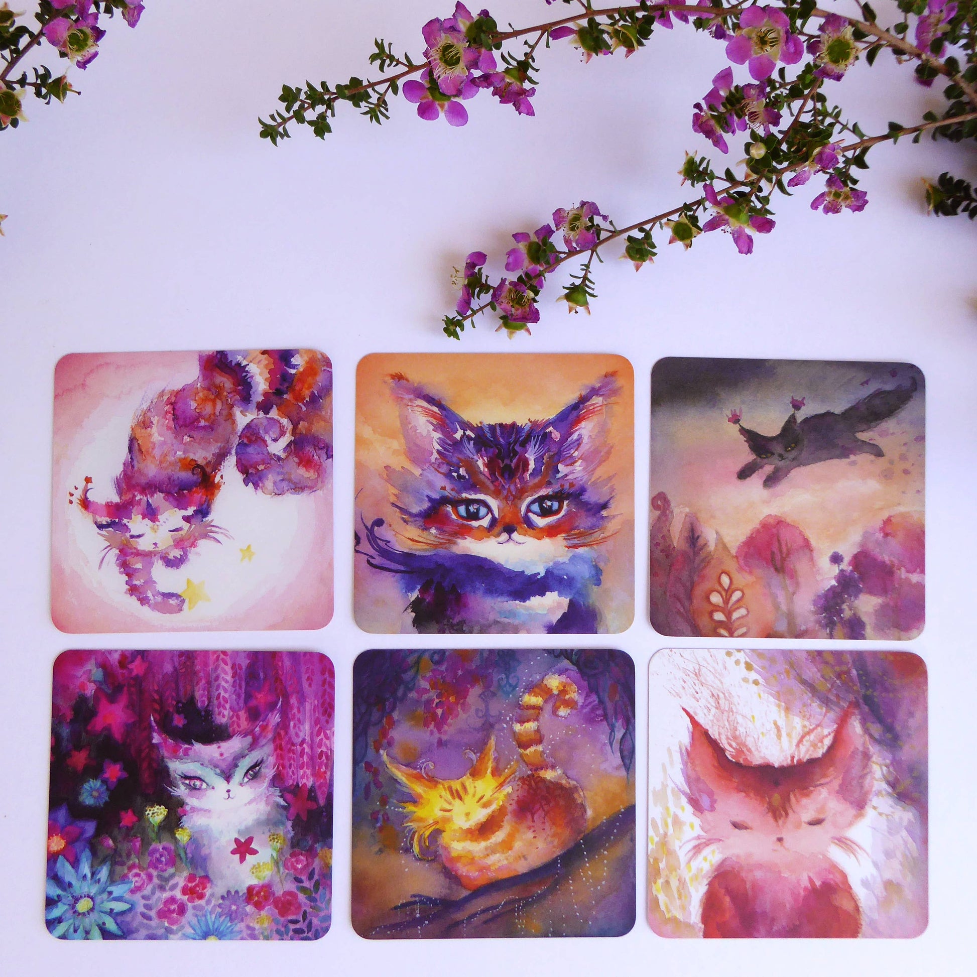 Each card has a hand-painted Spirit Cat printed on one side and a unique healing message on the other.