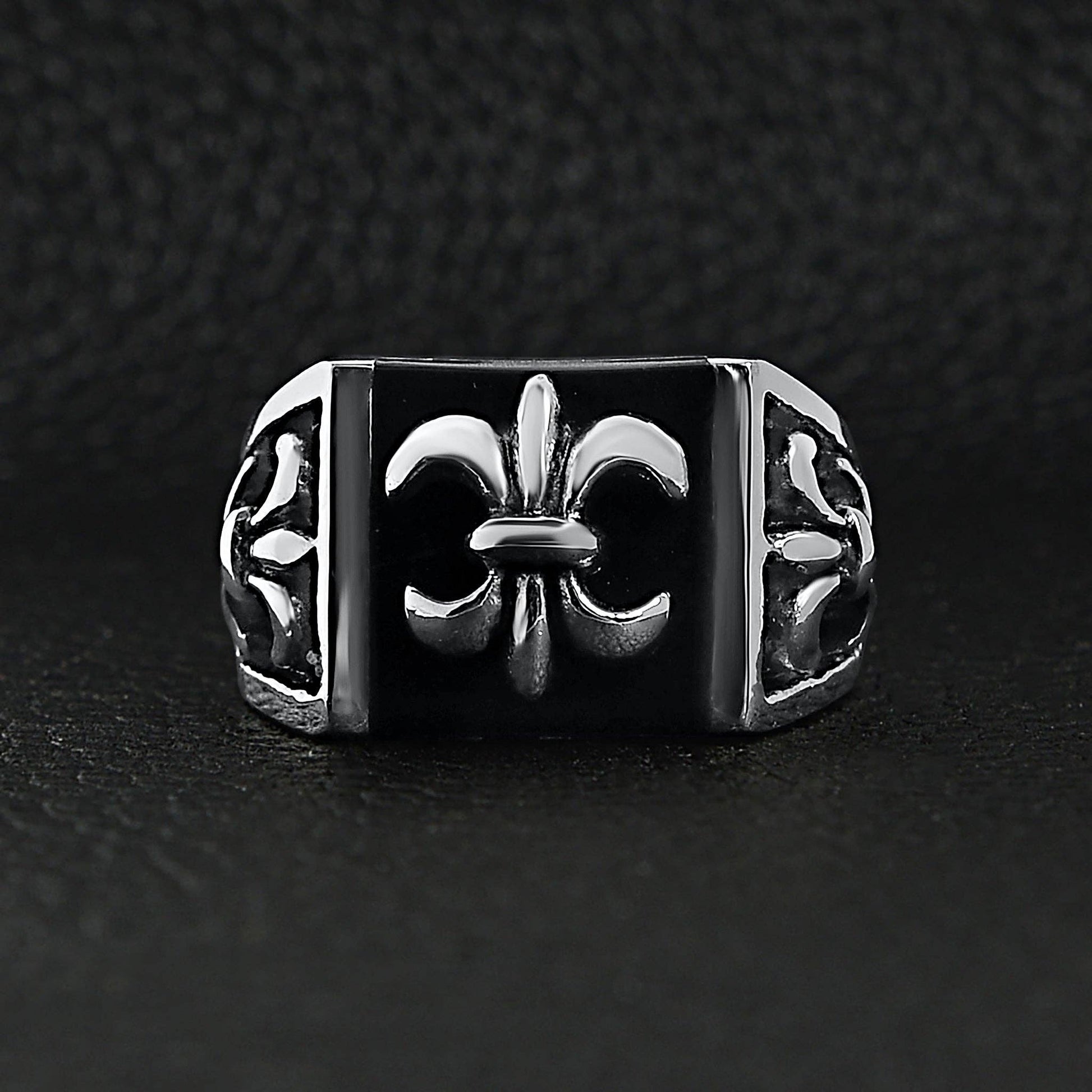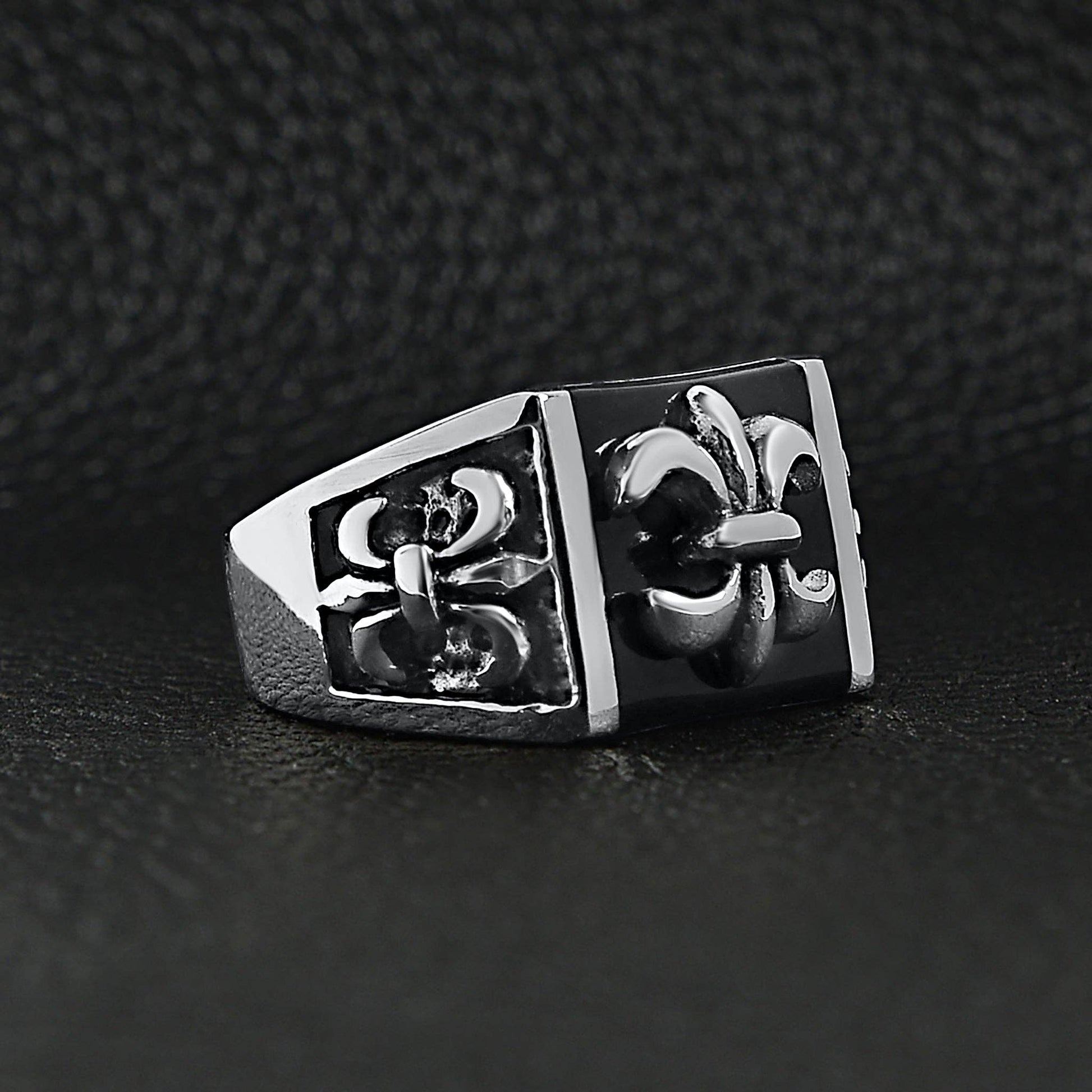 Black Fleur De Lis Signet Ring ☆ Stainless Steel