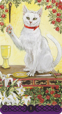 Journey with the enlightened feline and welcome their unique secrets. Cats—cute, mysterious, mischievous, or aloof—seem to live in a world between worlds, a realm of magic and power. Access their unique wisdom with this beautifully illustrated deck, featuring traditional Rider-Waite imagery and Pagan symbols.