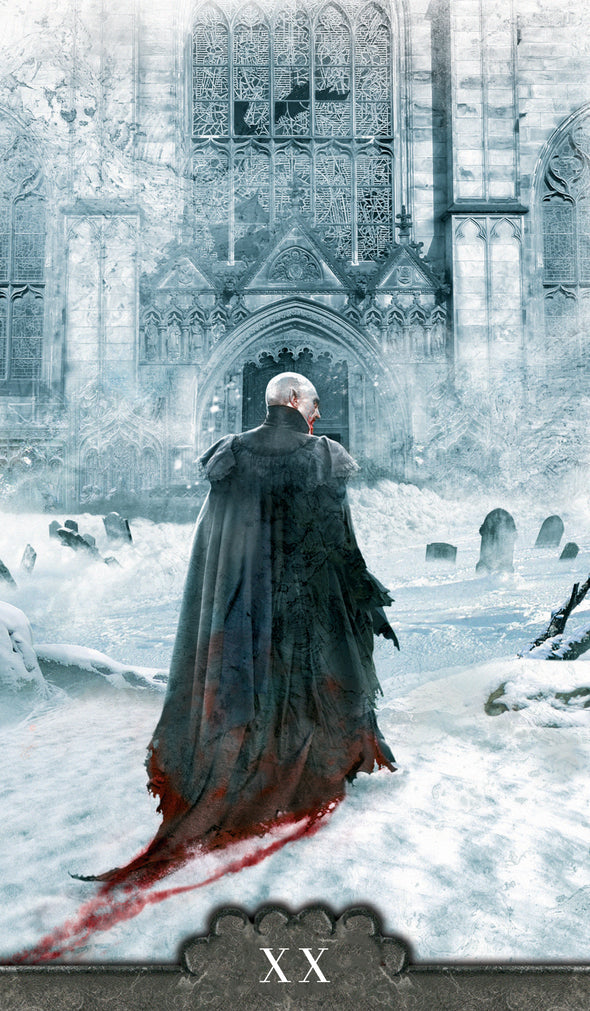 Vampires. One year after the zombie inspired Tarot Z, Alejandro Colucci brings his art to display the nature of vampires. It’s not a romantic world, nor it is a fictional experience. The vampires bring us to a world of primal essence, where the boundary between human and monster is grayed out. Within every human there are monsters, but inside every monster there is humanity. Artwork by Alejandro Colucci, Charles Harrington, 78 cards, 70x120 mm. Instructions. Multilingual edition.
