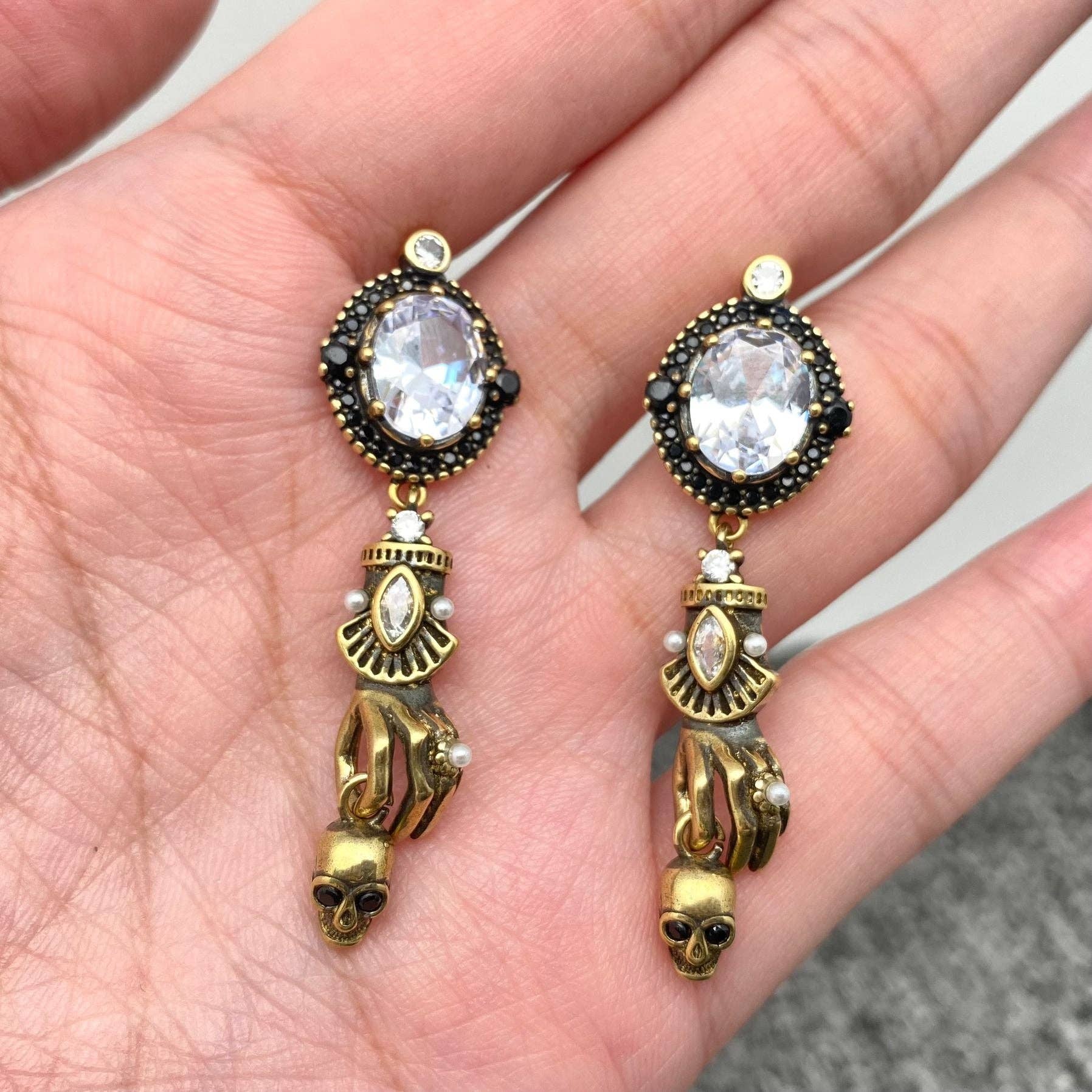 Skull In Hand Vintage Style Post Earrings