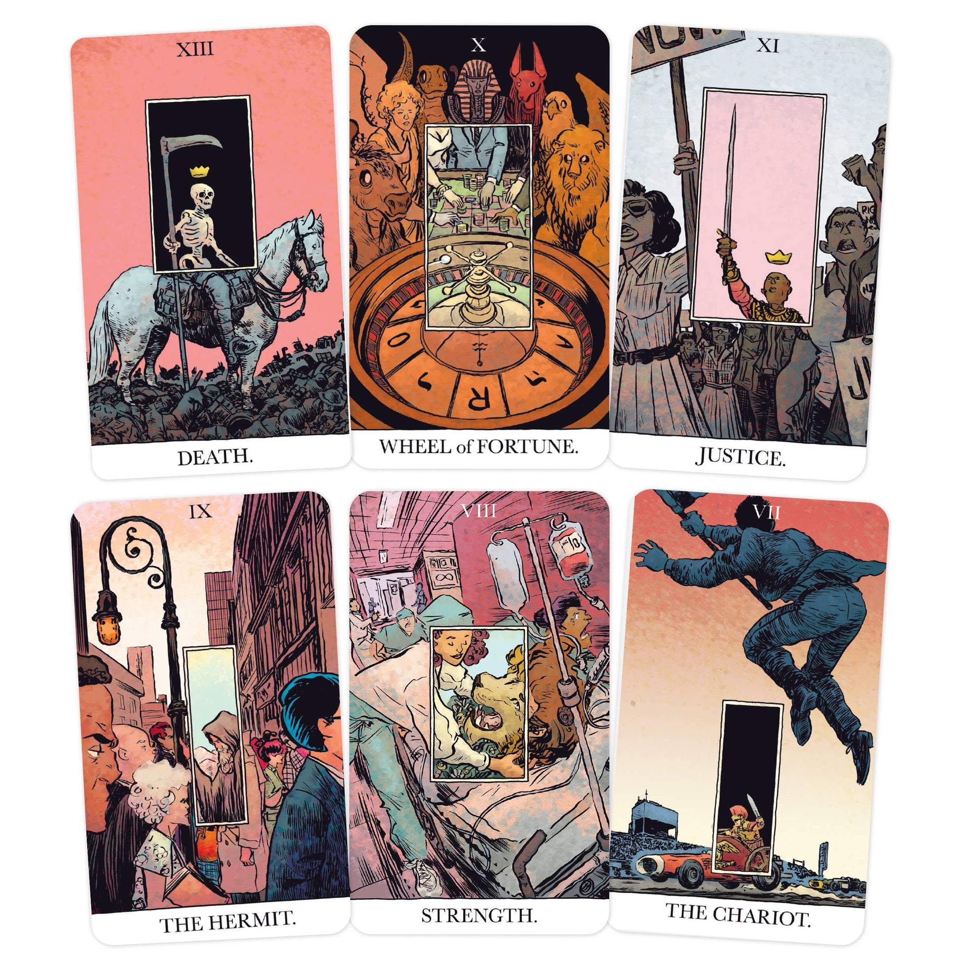 The 78 cards of the traditional tarot are all about understanding the many-layered aspects of the archetypes that animate life. Jesse Lonergan's gorgeously rendered Unveiled Tarot provides a peek behind the curtain on cards readers think they may know, but are always in the process of discovering. The panel-in-panel card illustrations highlight the amazing complexity of life, where there are innumerable ways to interpret even the most basic human trait. With humor and heart, Jesse Lonergan gives us a deck that is equally well-situated to become a classic in the collections of casual tarot users, art lovers, and experts who wish to deepen their practice. Card Deck; 3.56 x 5.5 inches; 64 pages.