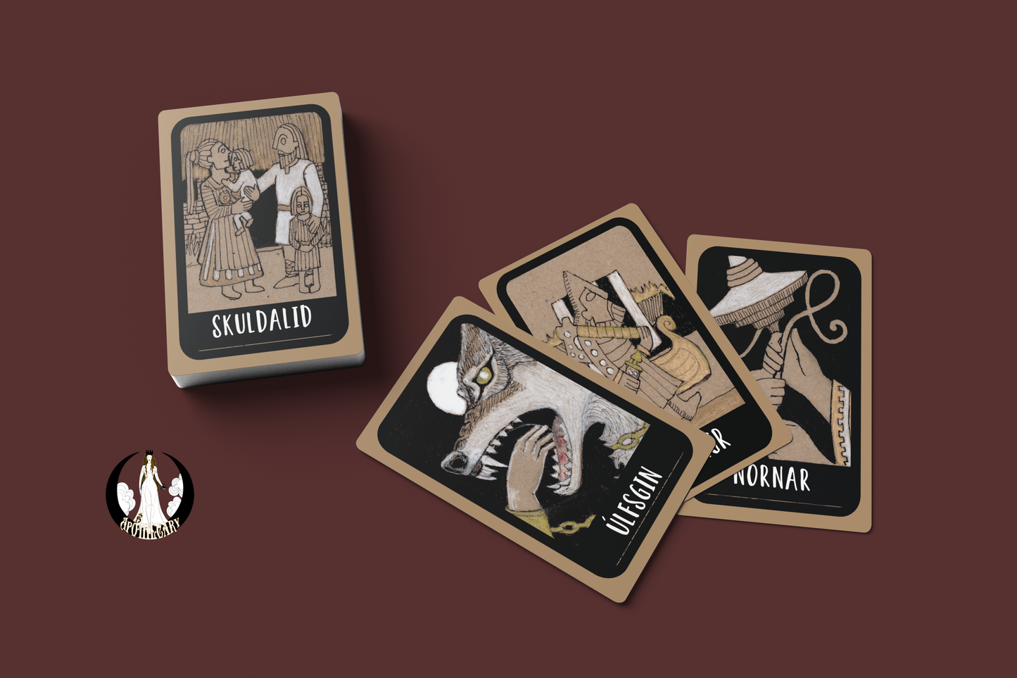 The deck is designed to mirror the narrative style of the poem, which is woven in traditional Norse magic.
