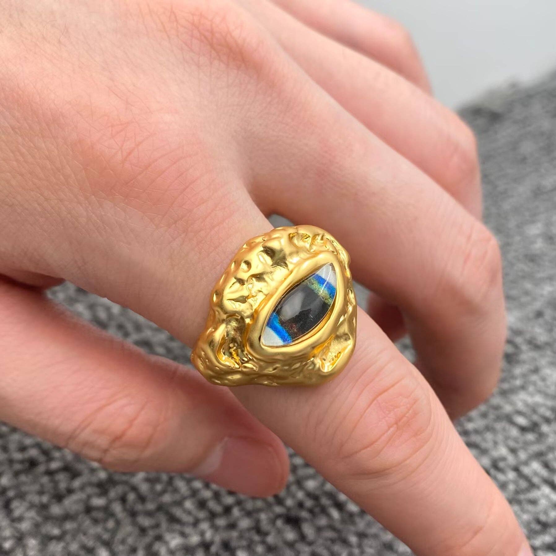 Vintage 24K Gold Plated Blue Evil Eye Ring