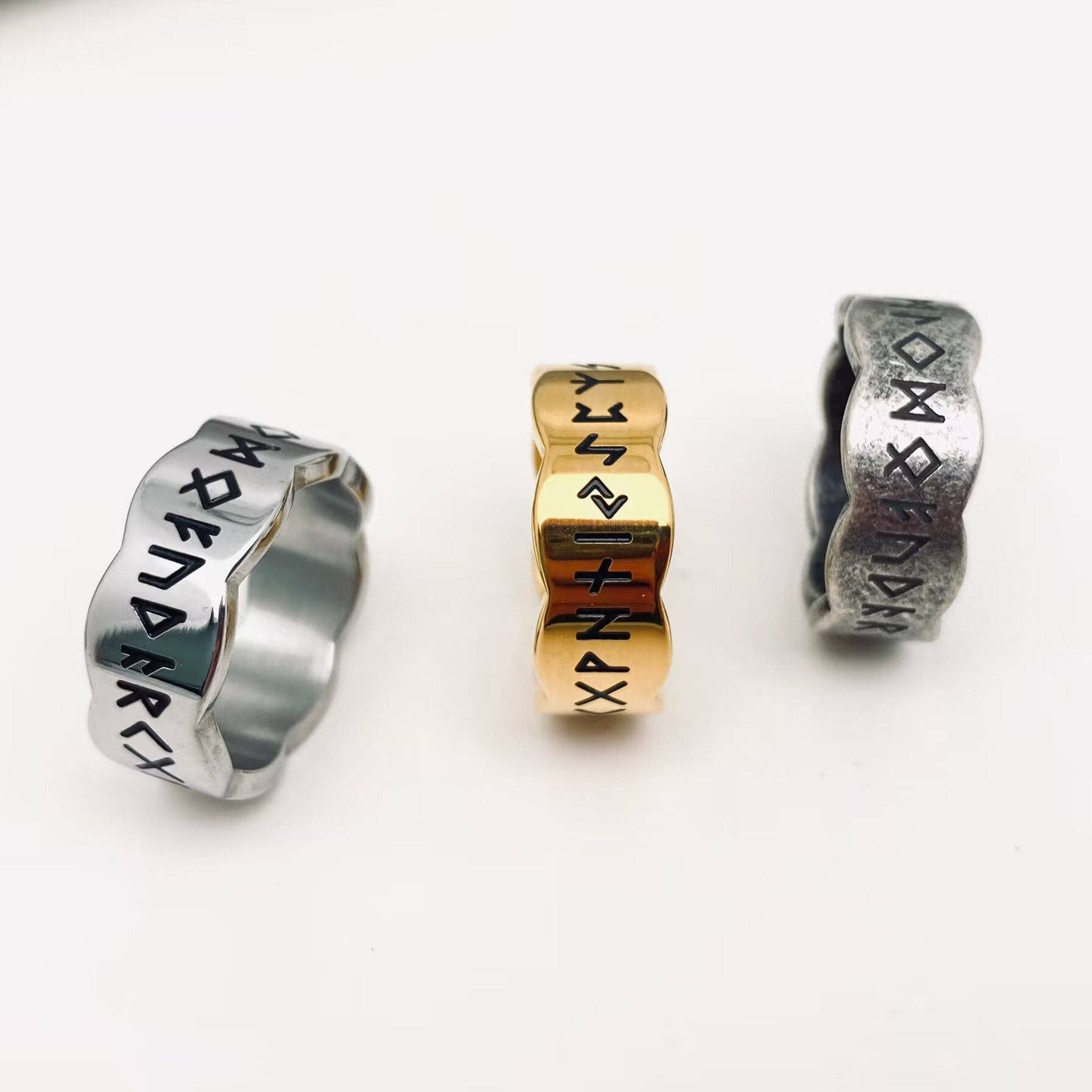 Wave Shape Viking Rune Titanium Steel Rings